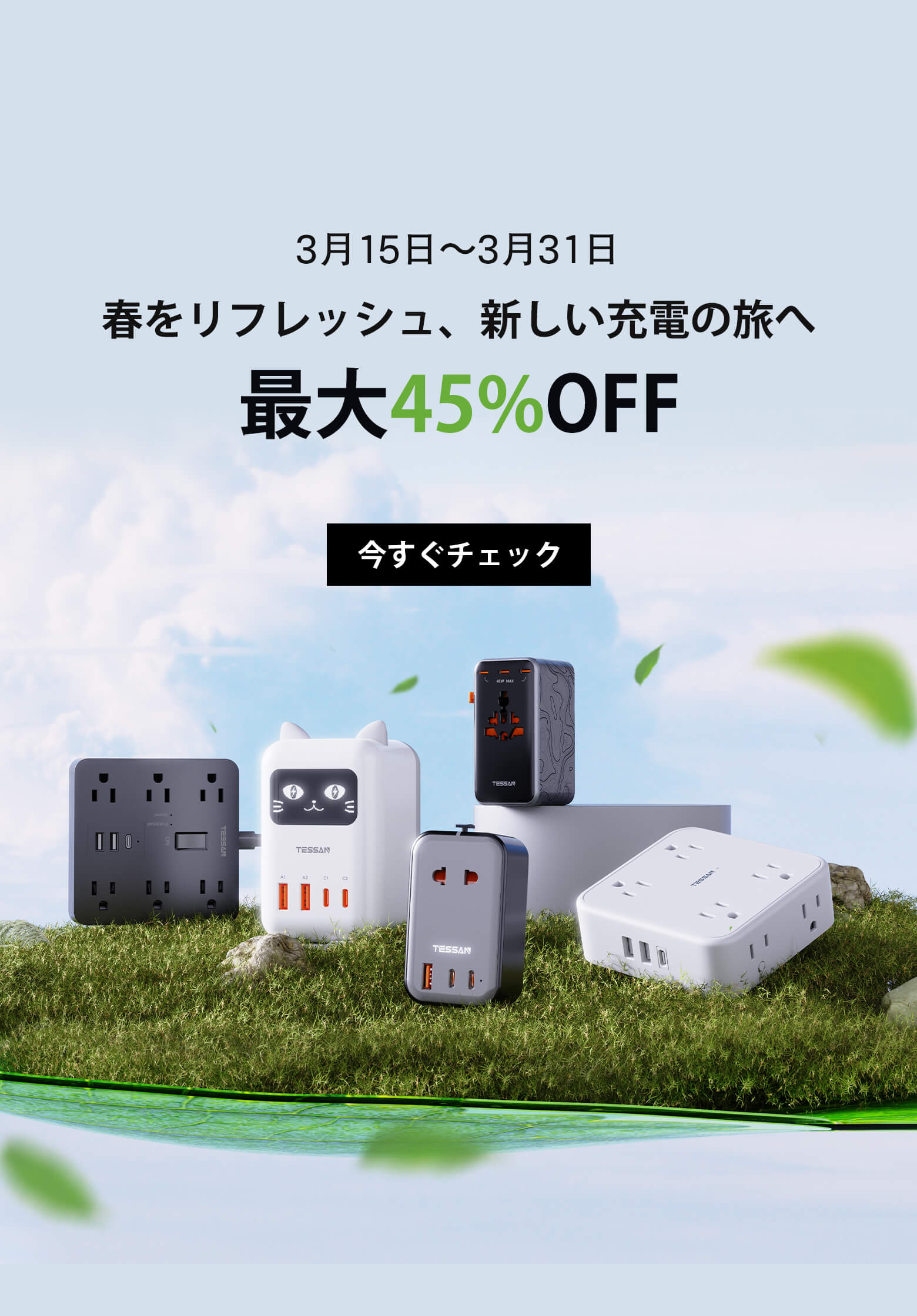 鈦芯動力株式会社は、大規模な研究開発チームと自社工場を擁し、世界中のユーザーに革新的な電源・充電関連製品を提供しています。ブランド設立以来、TESSANは世界200以上の国と地域で展開し、1,000万人を超えるユーザーに選ばれ続けてきました。私たちは、環境に配慮した持続可能な電気の使用方法を常に追求し、自宅でも旅行先でも、人々と世界をつなぐ快適な充電環境を生み出します。